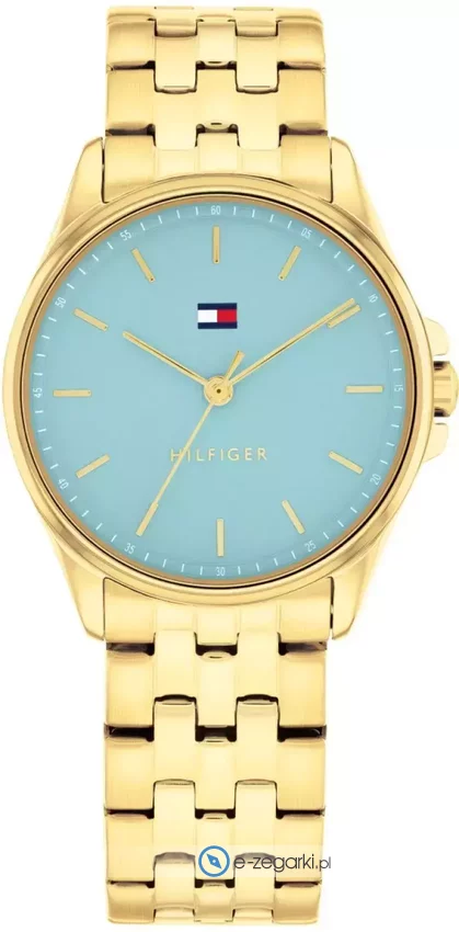 Zegarek damski 1782776 marki Tommy Hilfiger to stylowe połączenie funkcjonalności i modnego designu. Model ten w gamie innych zegarków tego producenta występuje w serii Tommy Hilfiger Jade. Ciekawy wygląd zegarka osiągnięto m.in. poprzez tarczę w kolorze niebieskim. Aktualna godzina zaprezentowana jest w sposób analogowy co intuicyjnie pozwala ją odczytać. Koperta w odcieniach koloru złotego szeroka jest na 30 mm oraz ma grubość 8 mm - ma okrągły kształt.