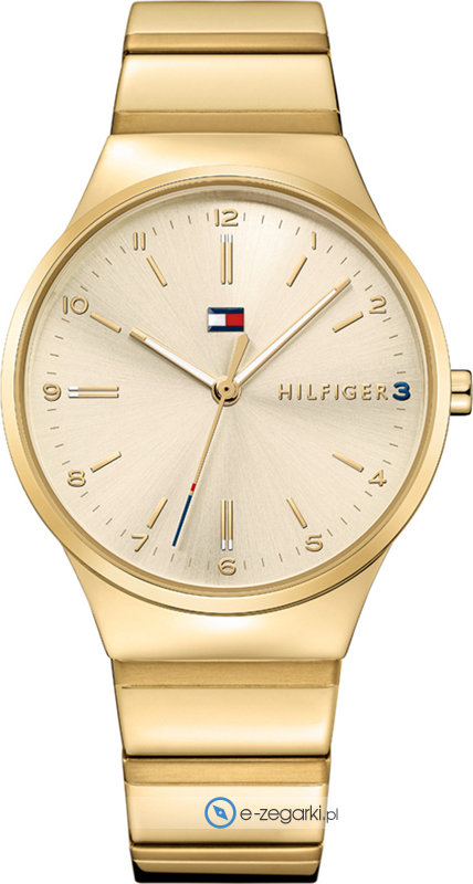 Zegarek damski 1781798 marki Tommy Hilfiger to ciekawa propozycja dla osób ceniących sobie dbałość o detale oraz bezproblemowe zachowanie mechanizmów. Stylu dodaje wysokiej klasy tarcza w kolorze złotym. Koperta szeroka jest na 38 mm oraz ma grubość 9 mm - wyróżnia się okrągłym kształtem.