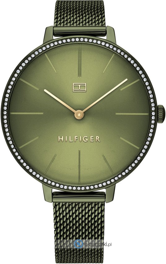 Zegarek damski 1782116 marki Tommy Hilfiger to dobre połączenie funkcjonalności a także modnego wzornictwa. Model ten w gamie pozostałych zegarków tego producenta występuje w serii Tommy Hilfiger Kelly. Charakteru dodaje wysokiej jakości cyferblat w kolorze zielonym. Pokazana metodą analogową aktualna godzina jest czytelna i prosta do sprawdzenia. Koperta została pokryta kolorem zielonym szeroka jest na 38 mm oraz ma grubość 6 mm - charakteryzuje się okrągłym kształtem.