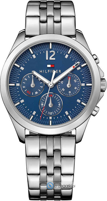 Zegarek 1781699 marki Tommy Hilfiger to stylowy zegarek naręczny damski, który jest wyposażony w ciekawe rozwiązania i funkcje. Model ten pochodzi z serii Tommy Hilfiger Kingsley. Stylu dodaje wysokiej klasy tarcza w kolorze granatowym. Aktualna godzina przedstawiona jest w sposób analogowy co bez trudu pozwala ją odczytać. Koperta jest pokryta kolorem stalowym szeroka jest na 36 mm oraz ma grubość 9 mm - posiada okrągły kształt.