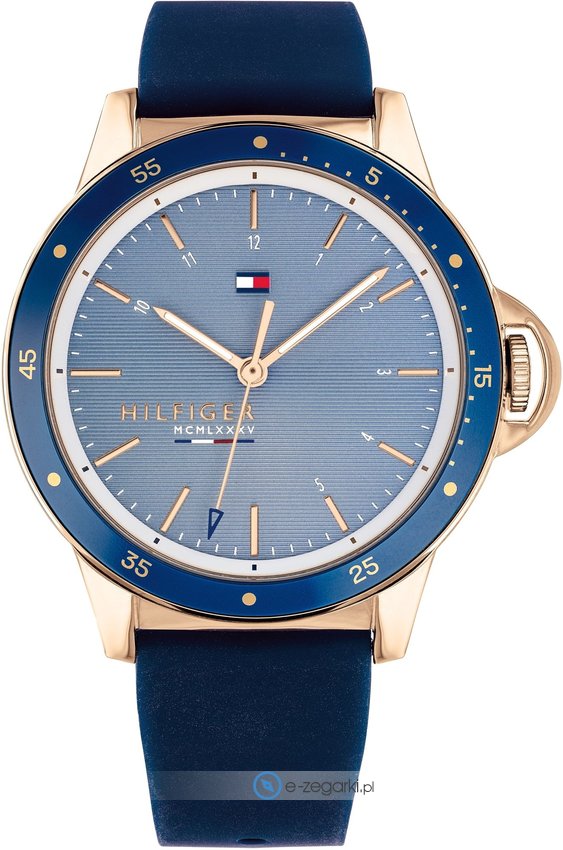 Zegarek damski 1782027 marki Tommy Hilfiger to dobra pozycja dla ludzi ceniących sobie dbałość o szczegóły a także bezproblemowe funkcjonowanie mechanizmów. Cyferblat zegarka w kolorze niebieskim. Koperta szeroka jest na 38 mm oraz ma grubość 9 mm - w kształcie okrągłym.