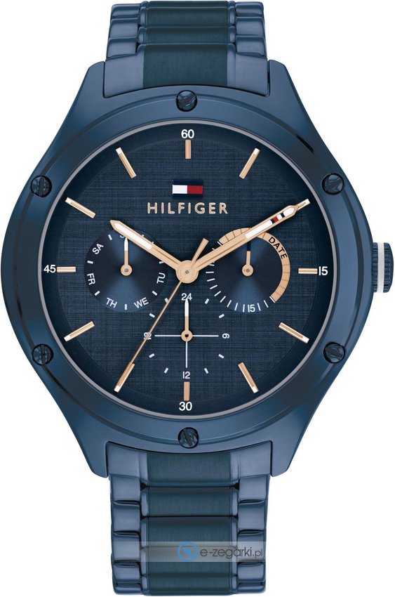 Tommy Hilfiger 1782656 - damski zegarek kierowany dla osób szukających zegarka z rodziny Tommy Hilfiger Lexi. Charakterystyczną konstrukcję zegarka uzyskano z pomocą tarczy w kolorze granatowym. Pokazana metodą analogową aktualna godzina jest czytelna i szybka do sprawdzenia. Koperta szeroka jest na 41 mm - ma okrągły kształt.
