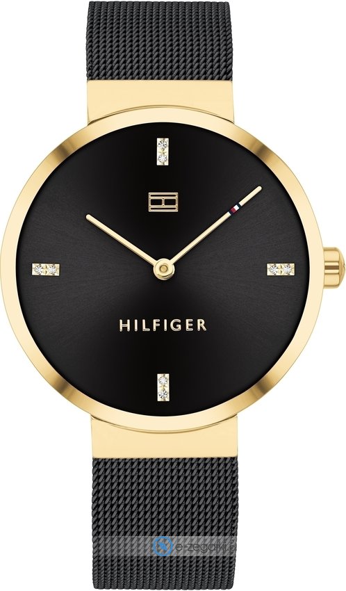 Tommy Hilfiger 1782216 - damski zegarek kierowany dla osób szukających zegarka z serii Tommy Hilfiger Liberty. Nieschematyczny wygląd zegarka osiągnięto również dzięki tarczy w kolorze czarnym. Aktualna godzina prezentowana jest w sposób analogowy co intuicyjnie pozwala ją odczytać. Koperta jest ozdobiona kolorem złotym szeroka jest na 35 mm oraz ma grubość 7 mm - ma okrągły kształt.