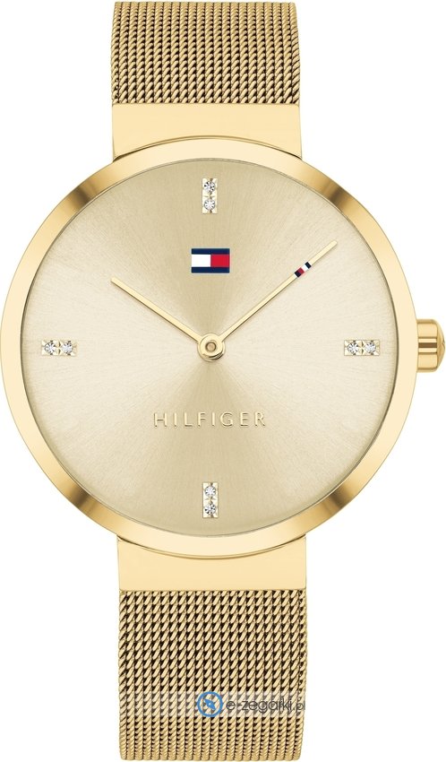 Zegarek damski 1782217 marki Tommy Hilfiger to dobra pozycja dla osób ceniących sobie dbałość o detale oraz bezproblemowe działanie mechanizmów. Stylu nadaje wysokiej jakości cyferblat w kolorze szarym. Zegarek ten pokazuje aktualny czas w formacie analogowym dzięki temu odczyt jest intuicyjny. Koperta w barwach koloru złotego szeroka jest na 35 mm oraz ma grubość 7 mm - cechuje się okrągłym kształtem.