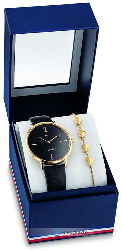 Damski zegarek 2770107 z kolekcji Tommy Hilfiger Liza marki Tommy Hilfiger to połączenie smaku i oryginalnych mechanizmów. Ciekawy wygląd zegarka uzyskano również dzięki tarczy w kolorze czarnym. Godzina zaprezentowana jest w sposób analogowy co intuicyjnie pozwala ją odczytać. Koperta w odcieniach koloru złotego szeroka jest na 40 mm - ma okrągły kształt.