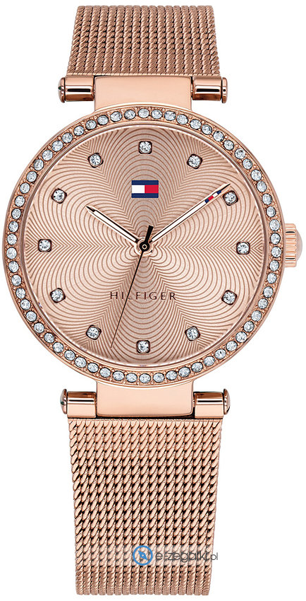 Zegarek damski 1781865 zalicza się do serii Lynn marki Tommy Hilfiger. Niebanalny wygląd czasomierza osiągnięto dzięki tarczy w kolorze różowo złotym. Koperta szeroka jest na 32 mm - ma okrągły kształt.