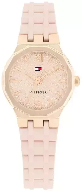 Model damski 1782884 marki Tommy Hilfiger należy do kolekcji Tommy Hilfiger Mackenzie. Charakter zapewnia wysokiej klasy tarcza w kolorze różowo złotym. Zegarek ten pokazuje aktualny czas w formacie analogowym dzięki temu odczyt jest bardzo łatwy. Koperta jest w kolorze różowo złotym szeroka jest na 25 mm oraz ma grubość 8 mm - w kształcie okrągłym.