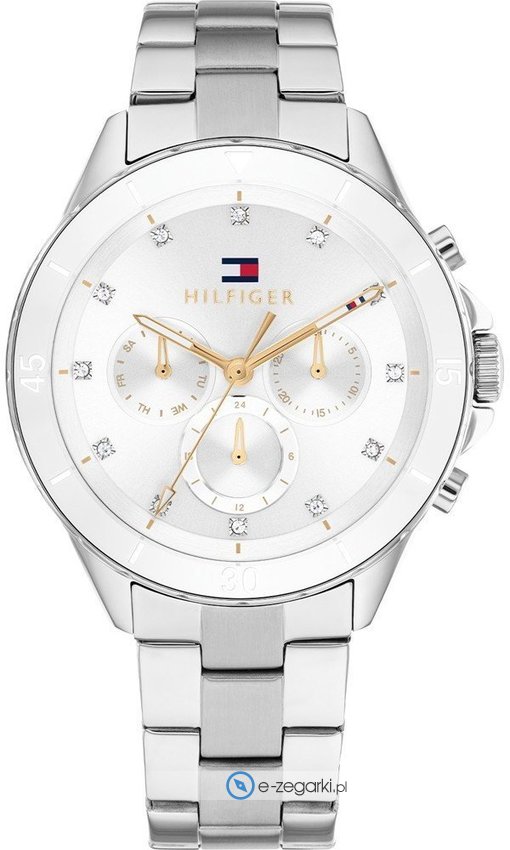 Tommy Hilfiger 1782707 - damski zegarek przeznaczony dla osób szukających zegarka z kolekcji Tommy Hilfiger Mellie. Ciekawy wygląd czasomierza osiągnięto m.in. poprzez tarczę w kolorze białym. Zegarek ten prezentuje aktualny czas w formacie analogowym dzięki temu odczyt jest bardzo łatwy. Koperta w barwach koloru białego szeroka jest na 40 mm - charakteryzuje się okrągłym kształtem.