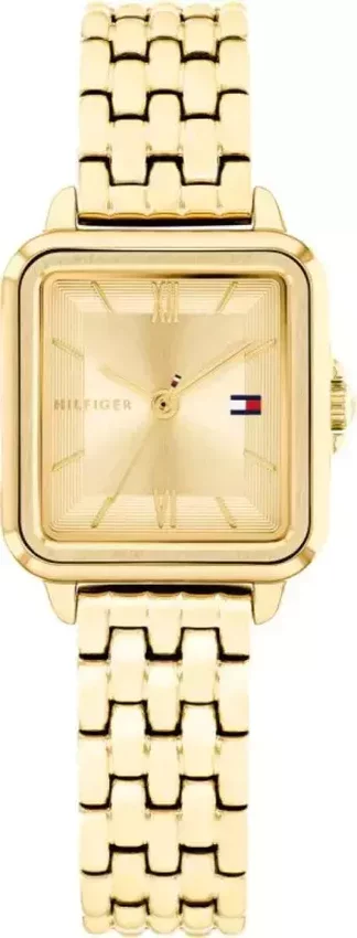 Model damski 1782832 należy do serii Tommy Hilfiger Mia marki Tommy Hilfiger. Tarcza zegarka jest w kolorze złotym. Zegarek ten prezentuje aktualny czas w formacie analogowym dzięki czemu odczyt jest bardzo łatwy. Koperta jest w kolorze złotym szeroka jest na 24 mm oraz ma grubość 7 mm - cechuje się prostokątnym kształtem.