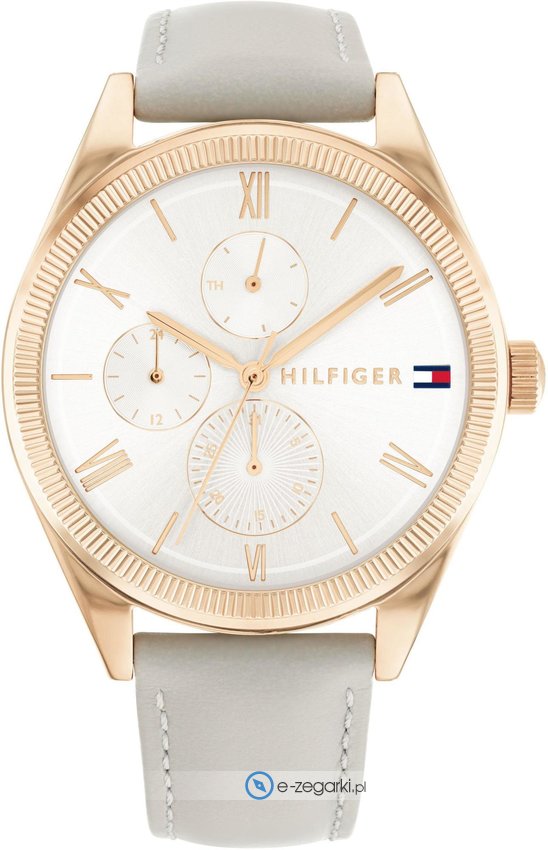Zegarek damski 1782595 marki Tommy Hilfiger to idealne połączenie funkcjonalności oraz ciekawego designu. Model ten występuje w serii Tommy Hilfiger Monica. Wysokiej jakości tarczę zegarka ozdobiono srebrnym kolorem. Zegarek ten pokazuje aktualny czas w formacie analogowym dzięki czemu odczyt jest bardzo łatwy. Koperta jest w kolorze różowo złotym szeroka jest na 38 mm oraz ma grubość 9 mm - cechuje się okrągłym kształtem.