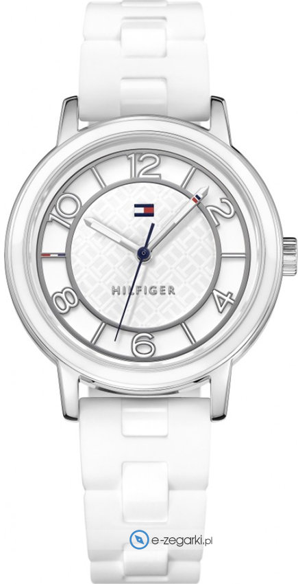 Zegarek 1781667 marki Tommy Hilfiger to gustowny zegarek naręczny damski, który jest wyposażony w ciekawe rozwiązania oraz funkcje. Model ten jest z kolekcji Tommy Hilfiger Nina. Wysokiej jakości cyferblat zegarka pokryto białym kolorem. Zaprezentowana metodą analogową aktualna godzina jest czytelna i szybka do sprawdzenia. Koperta jest w kolorze srebrnym szeroka jest na 36 mm oraz ma grubość 9 mm - posiada okrągły kształt.