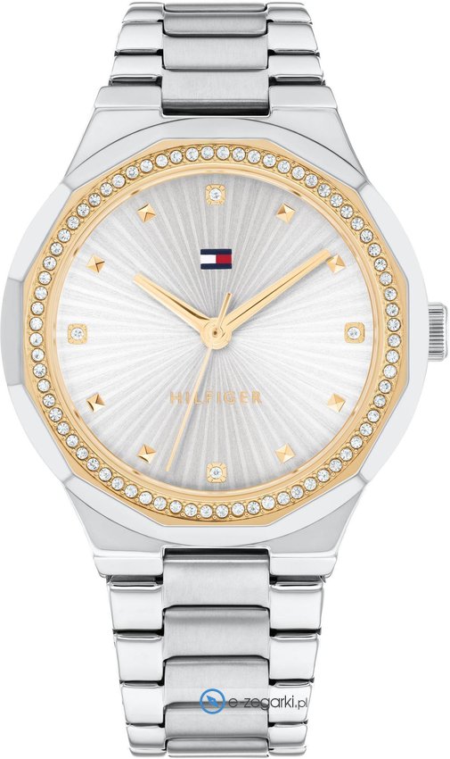 Zegarek damski 1782723 marki Tommy Hilfiger to dobre połączenie funkcjonalności i ciekawego designu. Model ten jest z kolekcji Tommy Hilfiger Piper. Niebanalną budowę zegarka osiągnięto dzięki tarczy w kolorze srebrnym. Zegarek ten prezentuje aktualny czas w formacie analogowym dzięki czemu odczyt jest intuicyjny. Koperta w barwach koloru srebrnego szeroka jest na 36 mm oraz ma grubość 9 mm - w kształcie okrągłym.