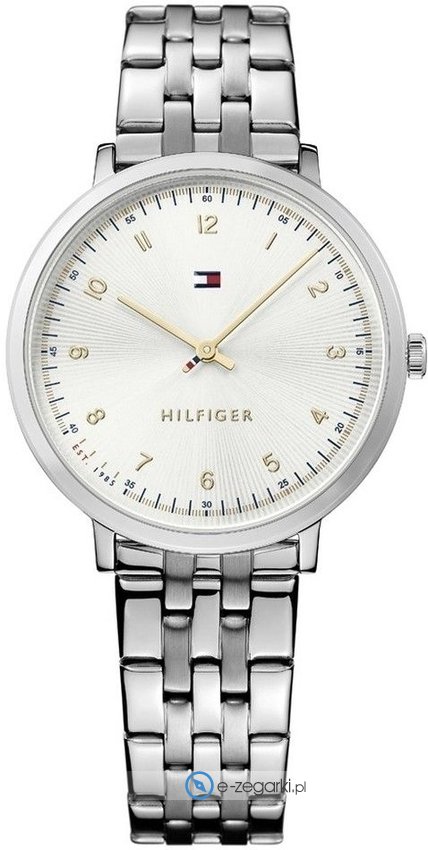 Zegarek damski 1781762 marki Tommy Hilfiger z serii Pippa. Nieschematyczny wygląd czasomierza uzyskano poprzez cyferblat w kolorze szarym. Koperta jest w kolorze stalowym szeroka jest na 35 mm oraz ma grubość 6 mm - cechuje się okrągłym kształtem.