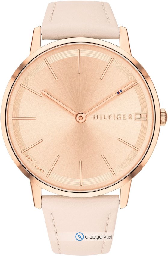 Zegarek damski 1781936 marki Tommy Hilfiger z serii Tommy Hilfiger Pippa. Cyferblat zegarka w kolorze różowo złotym. Koperta szeroka jest na 41 mm oraz ma grubość 6 mm - cechuje się okrągłym kształtem.
