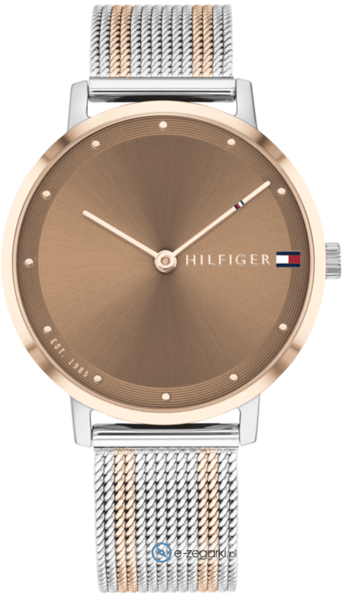 Zegarek damski 1782152 marki Tommy Hilfiger należy do kolekcji Tommy Hilfiger Pippa. Ciekawą budowę czasomierza uzyskano dzięki tarczy w kolorze brązowym. Aktualna godzina prezentowana jest w sposób analogowy co intuicyjnie pozwala ją odczytać. Koperta szeroka jest na 35 mm oraz ma grubość 6 mm - w kształcie okrągłym.