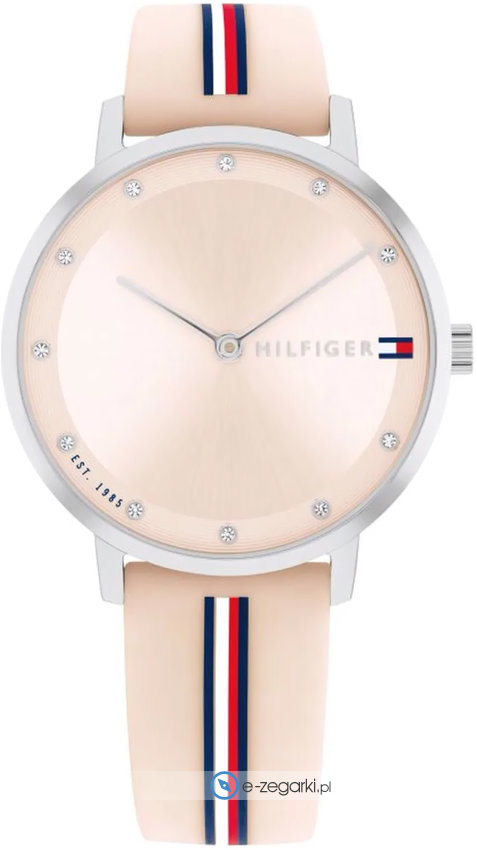 Model damski 1782737 zalicza się do rodziny Tommy Hilfiger Pippa marki Tommy Hilfiger. Charakter zapewnia wysokiej jakości cyferblat w kolorze różowo złotym. Zegarek ten pokazuje godzinę w formacie analogowym dzięki temu odczyt jest intuicyjny. Koperta jest w kolorze srebrnym szeroka jest na 35 mm oraz ma grubość 6 mm - w kształcie okrągłym.