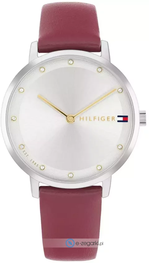 Tommy Hilfiger 1782763 to damski zegarek przeznaczony dla osób szukających zegarka z kolekcji Tommy Hilfiger Pippa. Wysokiej jakości tarczę zegarka pokryto srebrnym kolorem. Zegarek ten prezentuje aktualny czas w formacie analogowym dzięki temu odczyt jest intuicyjny. Koperta jest w kolorze srebrno złotym szeroka jest na 34 mm - cechuje się okrągłym kształtem.
