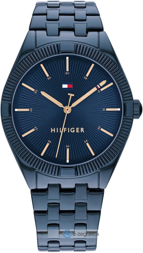 Damski zegarek 1782552 z serii Tommy Hilfiger Rachel marki Tommy Hilfiger to połączenie stylu i nieprzeciętnych funkcji. Ciekawą konstrukcję czasomierza uzyskano dzięki tarczy w kolorze granatowym. Aktualna godzina przedstawiona jest w sposób analogowy co intuicyjnie pozwala ją odczytać. Koperta w barwach koloru niebieskiego szeroka jest na 34 mm oraz ma grubość 8 mm - ma okrągły kształt.
