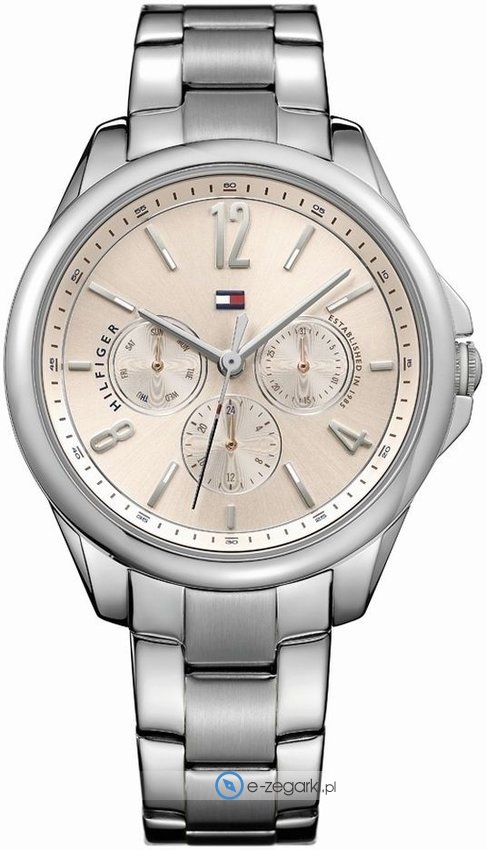 Model 1781826 marki Tommy Hilfiger to elegancki zegarek naręczny damski, który wyposażono w ciekawe rozwiązania i funkcje. Wysokiej trwałości tarczę zegarka ozdobiono szarym kolorem. Koperta w odcieniach koloru stalowego szeroka jest na 40 mm oraz ma grubość 8 mm - cechuje się okrągłym kształtem.