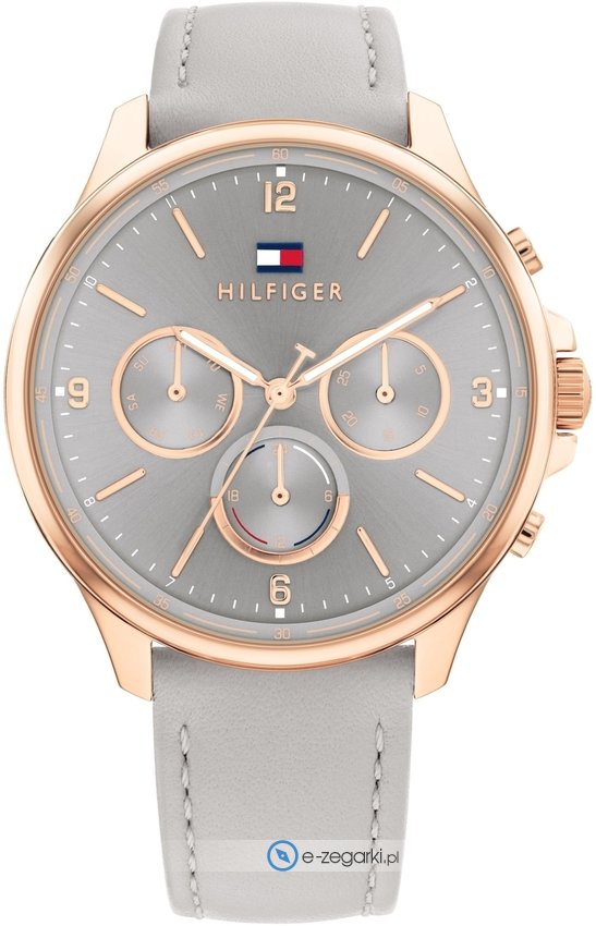 Tommy Hilfiger 1782449 to damski zegarek kierowany dla osób szukających zegarka z serii Tommy Hilfiger Scarlett. Wysokiej trwałości tarczę zegarka ozdobiono szarym kolorem. Godzina zaprezentowana jest w sposób analogowy co niezmiernie łatwo pozwala ją odczytać. Koperta w barwach koloru różowo złotego szeroka jest na 38 mm oraz ma grubość 9 mm - w kształcie okrągłym.