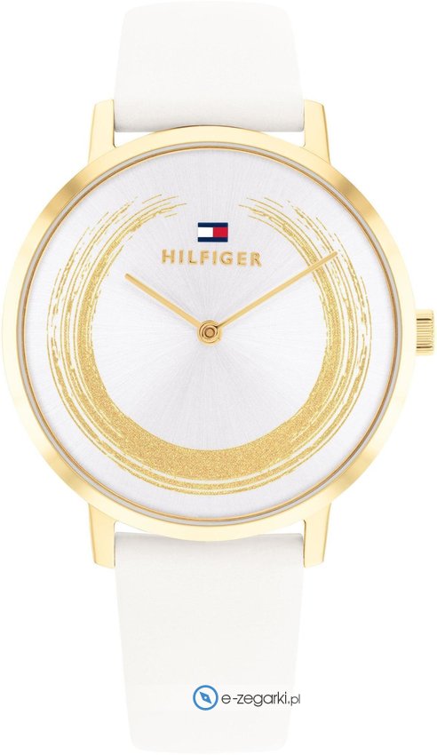 Model damski 1782605 marki Tommy Hilfiger należy do kolekcji Tommy Hilfiger Tea Le. Stylu nadaje wysokiej klasy cyferblat w kolorze srebrnym. Pokazana metodą analogową aktualna godzina jest czytelna i prosta do odczytania. Koperta w odcieniach koloru złotego szeroka jest na 35 mm - ma okrągły kształt.