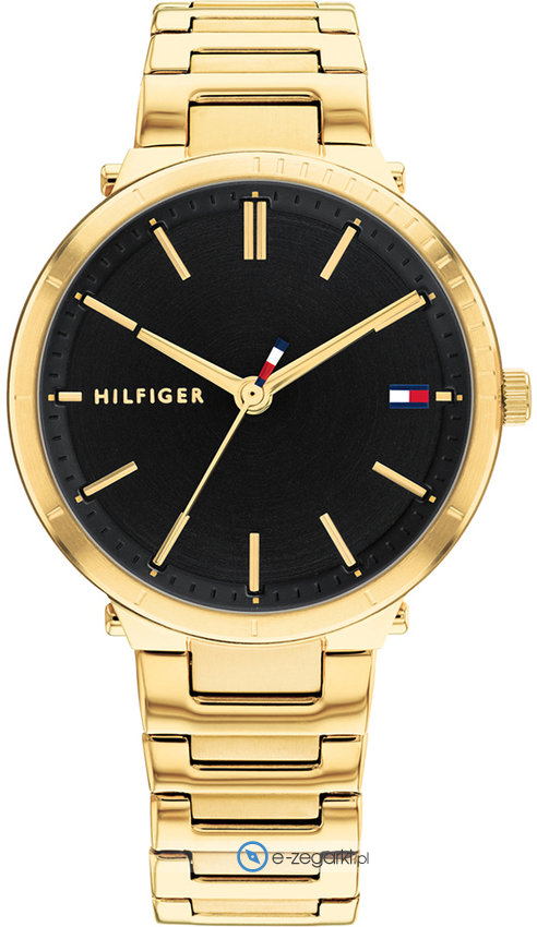 Zegarek damski 1782407 marki Tommy Hilfiger to dobre połączenie funkcjonalności i modnego designu. Model ten należy do serii Tommy Hilfiger Zoey. Cyferblat zegarka jest w kolorze czarnym. Godzina pokazywana jest w sposób analogowy co niezmiernie łatwo pozwala ją odczytać. Koperta jest pokryta kolorem złotym szeroka jest na 34 mm oraz ma grubość 7 mm - w kształcie okrągłym.