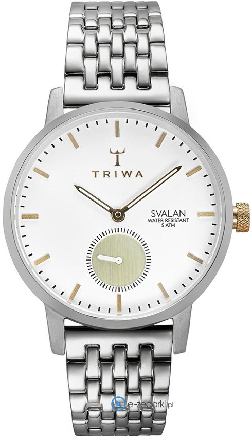 Model damski SVST110-BS121212 marki Triwa z serii Triwa Svalan. Niestereotypowy wygląd zegarka uzyskano m.in. poprzez tarczę w kolorze białym. Godzina prezentowana jest w sposób analogowy co intuicyjnie pozwala ją odczytać. Koperta jest w kolorze srebrnym szeroka jest na 34 mm oraz ma grubość 7 mm - ma okrągły kształt.