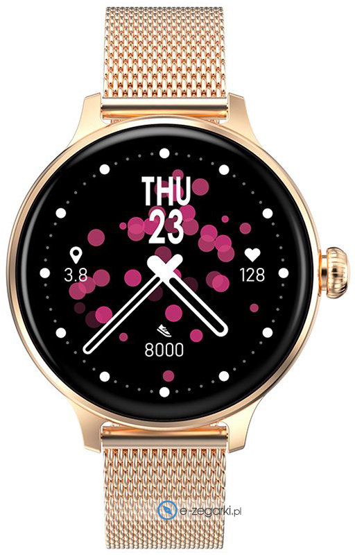 Model VCTR-35-04GD marki Vector Smart to gustowny zegarek naręczny damski, który jest wyposażony w ciekawe rozwiązania i funkcje. Zegarek ten prezentuje godzinę w formacie cyfrowym dzięki czemu odczyt jest intuicyjny. Koperta jest ozdobiona kolorem różowo złotym szeroka jest na 39 mm oraz ma grubość 12 mm - charakteryzuje się okrągłym kształtem.