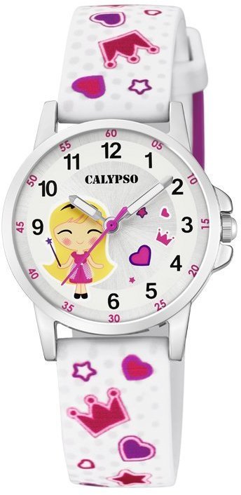 Model K5776-1 marki Calypso to gustowny zegarek naręczny dziecięcy, który posiada pomysłowe rozwiązania i funkcje. Charakterystyczny wygląd czasomierza osiągnięto poprzez cyferblat w kolorze białym. Koperta szeroka jest na 27 mm - wyróżnia się okrągłym kształtem.