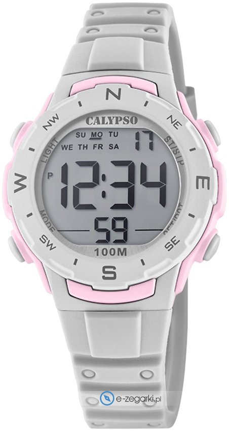 Model K5801-1 marki Calypso to stylowy zegarek naręczny dziecięcy, który wyposażono w pomysłowe rozwiązania oraz funkcje. Charakterystyczną stylistykę czasomierza osiągnięto z pomocą tarczy w kolorze szarym. Pokazana metodą cyfrową bieżąca godzina jest czytelna i szybka do sprawdzenia. Koperta szeroka jest na 35 mm - cechuje się okrągłym kształtem.