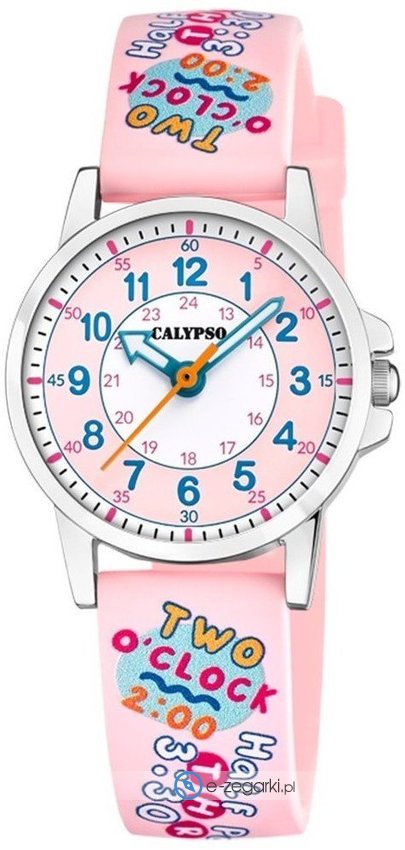 Dziecięcy zegarek Calypso K5824-2 to zegarek, który dzięki swemu wzornictwu zawsze będzie prezentował się dobrze. Stylu nadaje wysokiej jakości cyferblat w kolorze różowym. Aktualna godzina zaprezentowana jest w sposób analogowy co niezmiernie łatwo pozwala ją odczytać. Koperta szeroka jest na 27 mm - cechuje się okrągłym kształtem.