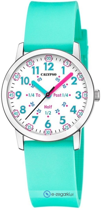 Zegarek dziecięcy K5825-1 marki Calypso to dobre połączenie funkcjonalności i modnego designu. Charakter zapewnia wysokiej jakości cyferblat w kolorze białym. Zaprezentowana metodą analogową aktualna godzina jest czytelna i łatwa do odczytania. Koperta szeroka jest na 30 mm - w kształcie okrągłym.