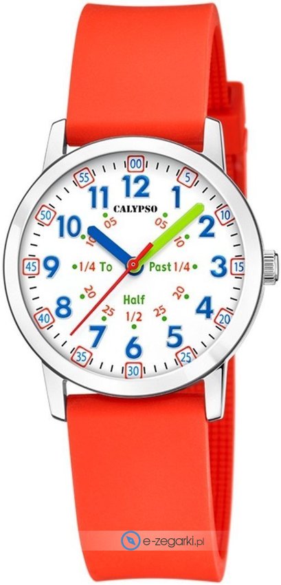 Model K5825-5 marki Calypso to stylowy zegarek naręczny dziecięcy, który posiada ciekawe rozwiązania oraz funkcje. Charakterystyczny wygląd zegarka uzyskano m.in. poprzez tarczę w kolorze białym. Zegarek ten prezentuje aktualny czas w formacie analogowym dzięki czemu odczyt jest bardzo łatwy. Koperta szeroka jest na 30 mm - w kształcie okrągłym.