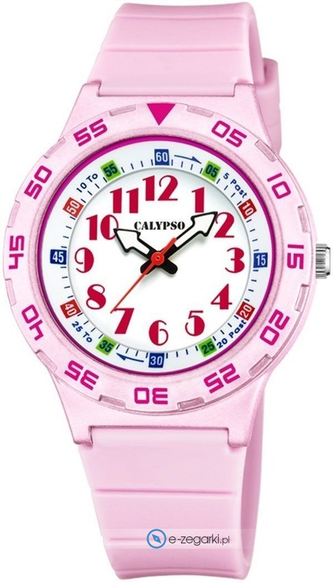 Dziecięcy zegarek Calypso K5828-1 to zegarek, który dzięki swemu wzornictwu zawsze będzie prezentował się dobrze. Tarcza zegarka jest w kolorze białym. Pokazana metodą analogową aktualna godzina jest czytelna i szybka do odczytania.