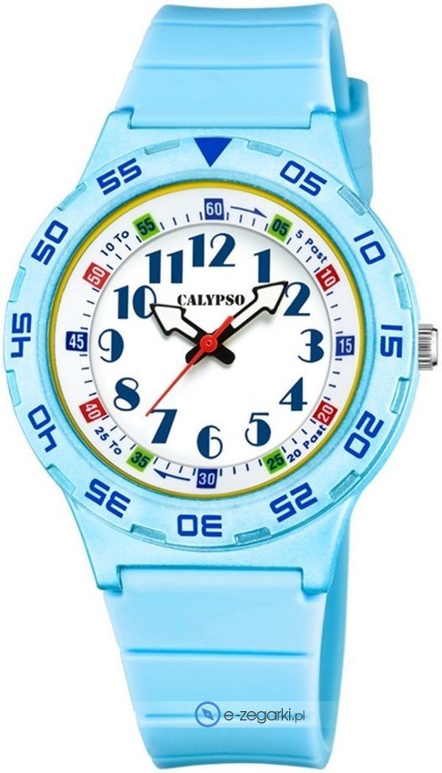 Zegarek dziecięcy K5828-2 marki Calypso to stylowe połączenie funkcjonalności a także ciekawego wzornictwa. Charakterystyczny wygląd zegarka uzyskano również dzięki tarczy w kolorze białym. Zegarek ten pokazuje godzinę w formacie analogowym dzięki temu odczyt jest intuicyjny.
