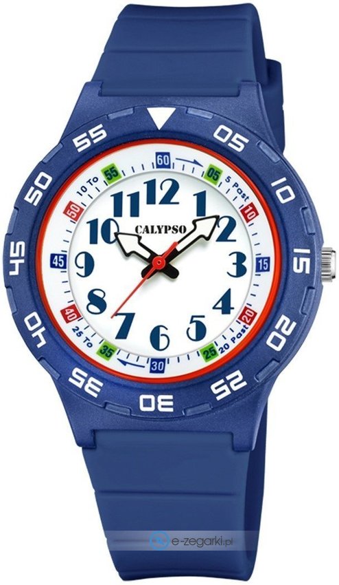 Model K5828-5 marki Calypso to gustowny zegarek naręczny dziecięcy, który wyposażono w ciekawe rozwiązania i funkcje. Ciekawy wygląd zegarka uzyskano m.in. poprzez tarczę w kolorze białym. Godzina przedstawiona jest w sposób analogowy co bez trudu pozwala ją odczytać.