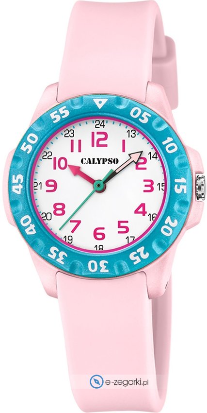 Model K5829-2 marki Calypso to gustowny zegarek naręczny dziecięcy, który posiada ciekawe rozwiązania i funkcje. Ciekawy wygląd zegarka osiągnięto także dzięki tarczy w kolorze białym. Pokazana metodą analogową aktualna godzina jest czytelna i prosta do sprawdzenia.