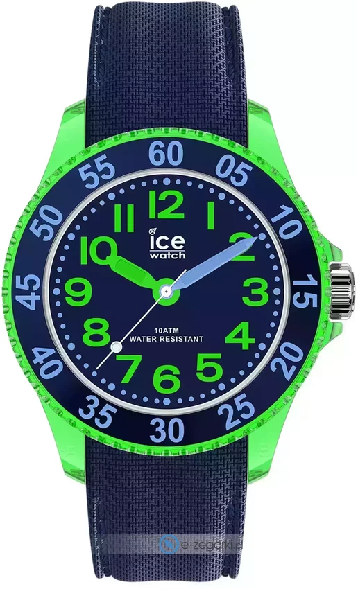 Zegarek dziecięcy 018931 z rodziny Ice Watch Cartoon marki Ice Watch. Wysokiej jakości cyferblat zegarka pokryto granatowym kolorem. Zegarek ten pokazuje godzinę w formacie analogowym dzięki temu odczyt jest bezproblemowy. Koperta w barwach koloru zielonego szeroka jest na 28 mm oraz ma grubość 11 mm - charakteryzuje się okrągłym kształtem.