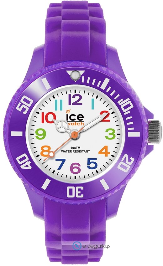 Zegarek dziecięcy 000788 z kolekcji Ice Watch Ice Mini marki Ice Watch. Nieschematyczny wygląd czasomierza uzyskano m.in. poprzez cyferblat w kolorze białym. Koperta jest pokryta kolorem fioletowym szeroka jest na 28 mm oraz ma grubość 10 mm - charakteryzuje się okrągłym kształtem.