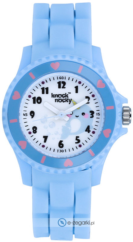 Zegarek dziecięcy DA163020221 marki Knock Nocky to ciekawa pozycja dla ludzi ceniących sobie dbałość o detale jak również bezproblemowe działanie mechanizmów. Wysokiej trwałości tarczę zegarka pokryto białym kolorem. Zaprezentowana metodą analogową aktualna godzina jest czytelna i łatwa do odczytania. Koperta jest w kolorze niebieskim szeroka jest na 30 mm oraz ma grubość 11 mm - w kształcie okrągłym.