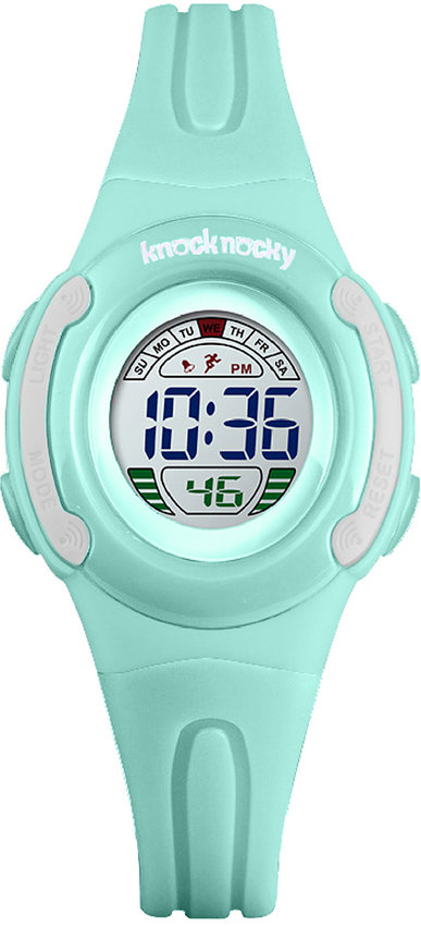 Dziecięcy zegarek Knock Nocky SR0408044 to zegarek, który dzięki swemu wzornictwu zawsze będzie prezentował się dobrze. Aktualna godzina zaprezentowana jest w sposób cyfrowy co intuicyjnie pozwala ją odczytać. Koperta jest pokryta kolorem zielonym szeroka jest na 29 mm oraz ma grubość 12 mm - wyróżnia się owalnym kształtem.