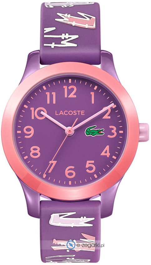 Model L1212-KIDS-2030020 marki Lacoste to stylowy zegarek naręczny dziecięcy, który posiada pomysłowe rozwiązania oraz funkcje. Wysokiej trwałości tarczę zegarka pokryto fioletowym kolorem. Zaprezentowana metodą analogową bieżąca godzina jest czytelna i szybka do sprawdzenia. Koperta w odcieniach koloru fioletowego szeroka jest na 32 mm oraz ma grubość 10 mm - charakteryzuje się okrągłym kształtem.