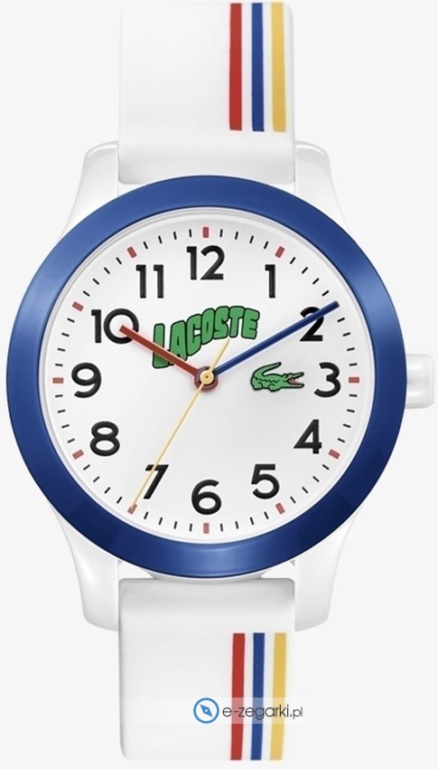 Model L1212-KIDS-2030027 marki Lacoste to elegancki zegarek naręczny dziecięcy, który jest wyposażony w ciekawe rozwiązania oraz funkcje. Styl zapewnia wysokiej jakości cyferblat w kolorze jasnym. Zegarek ten prezentuje aktualny czas w formacie analogowym dzięki temu odczyt jest intuicyjny. Koperta szeroka jest na 32 mm oraz ma grubość 8 mm - w kształcie okrągłym.