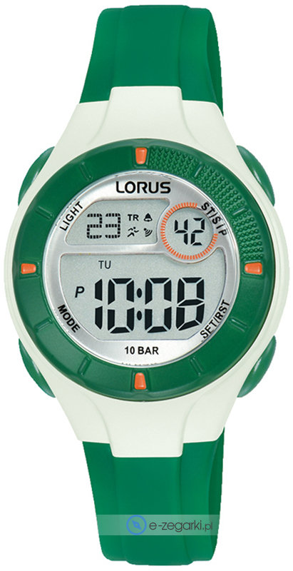 Kwarcowa bateria umieszczona w zegarku R2343PX9 zapewnia zasilanie jego mechanizmu. Pasek zielonego koloru wykonany jest z wysokiej jakości tworzywa sztucznego.