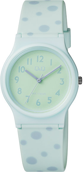Zegarek dziecięcy VP46-065 marki Q&Q to stylowe połączenie funkcjonalności a także ciekawego designu. Charakter zapewnia wysokiej klasy tarcza w kolorze zielonym. Zegarek ten prezentuje aktualny czas w formacie analogowym dzięki czemu odczyt jest bezproblemowy. Koperta jest ozdobiona kolorem zielonym szeroka jest na 34 mm oraz ma grubość 8.9 mm - charakteryzuje się okrągłym kształtem.