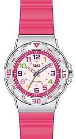 Zegarek dziecięcy VR19-012 marki Q&Q to stylowe połączenie funkcjonalności i ciekawego designu. Tarcza zegarka w kolorze białym. Godzina zaprezentowana jest w sposób analogowy co niezmiernie łatwo pozwala ją odczytać. Koperta jest w kolorze srebrnym szeroka jest na 33 mm oraz ma grubość 9.70 mm - wyróżnia się okrągłym kształtem.