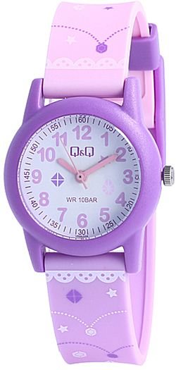 Dziecięcy zegarek Q&Q VR99-006 to zegarek, który dzięki swemu wzornictwu zawsze będzie prezentował się dobrze. Charakter zapewnia wysokiej jakości tarcza w kolorze białym. Pokazana metodą analogową aktualna godzina jest czytelna i łatwa do sprawdzenia. Koperta jest pokryta kolorem fioletowym szeroka jest na 30 mm oraz ma grubość 10 mm - ma okrągły kształt.