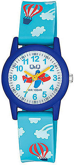 Zegarek dziecięcy VR99-018 marki Q&Q to idealne połączenie funkcjonalności i ciekawego designu. Godzina zaprezentowana jest w sposób analogowy co bez trudu pozwala ją odczytać. Koperta w barwach koloru niebieskiego szeroka jest na 30 mm oraz ma grubość 10 mm - ma okrągły kształt.