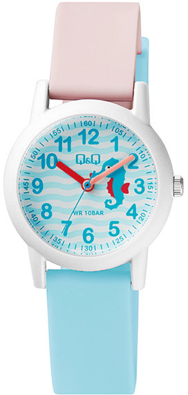 Model VS49-001 marki Q&Q to elegancki zegarek naręczny dziecięcy, który jest wyposażony w pomysłowe rozwiązania i funkcje. Tarcza zegarka w kolorze niebieskim. Zaprezentowana metodą analogową aktualna godzina jest czytelna i łatwa do odczytania. Koperta została pokryta kolorem białym o grubości 10 mm - wyróżnia się okrągłym kształtem.