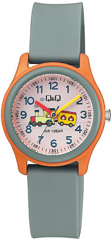 Dziecięcy zegarek Q&Q VS59-008 to zegarek, który dzięki swemu wzornictwu zawsze będzie prezentował się dobrze. Niebanalny wygląd czasomierza uzyskano m.in. poprzez tarczę w kolorze pomarańczowym. Zaprezentowana metodą analogową bieżąca godzina jest czytelna i łatwa do sprawdzenia. Koperta w odcieniach koloru pomarańczowego szeroka jest na 32 mm oraz ma grubość 10 mm - w kształcie okrągłym.
